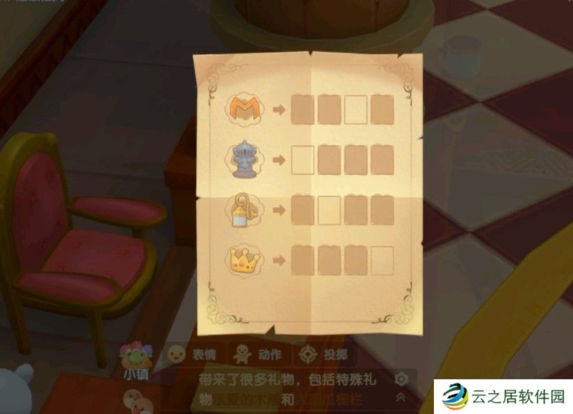 在城堡外换上【伪装记者】装扮,进入城堡,密码是4463(物品的数量和空格就是顺序)。无法完成的话就退出城堡再进入一次。