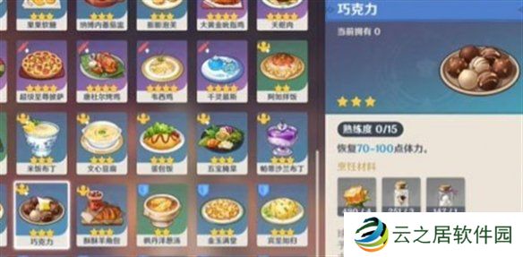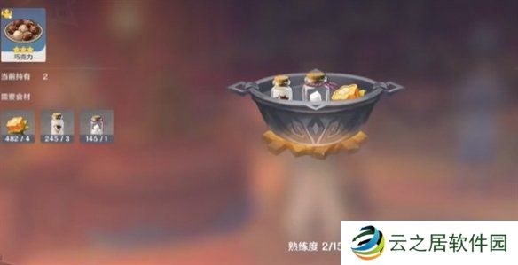 2、收集到必需的材料后,带领希诺宁角色前往料理区,并选中巧克力食谱开始制作过程。