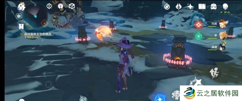 第三步,当第一个仙灵飞到遗迹重机前面的那个柱子和第二个柱子之间,和第三个仙灵互动,这时机关就启动了;